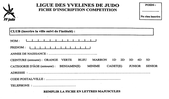La Judokate, ………………., est sélectionnée pour représenter le club du J.K.C. Versailles dans une compétition. Cette compétition se déroulera le Dimanche 7 décembre 2008 à Poissy :